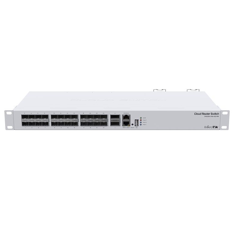If you are working with substantial amount of data - like providing Internet access or maintaining a huge data center - this is the perfect upgrade for your setup. CRS326-24S+2Q+RM is our first product with 40 Gbps QSFP+ ports for remarkably fast and stable fiber connection. Overall it has two 40 Gbps QSFP+ ports and twenty four 10 Gbps SFP+ ports, which provides total nonblocking throughput of 320 Gbps and switching capacity of 640 Gbps with forwarding rate of 252 Mpps with most common packets. CRS326-24S+2Q+RM is easy to manage - it has a full size USB port for configuration and dual power supply for redundancy - no unexpected downtime, your clients and colleagues will be thankful! You can choose between MikroTik's legendary feature-packed RouterOS for booting or a simpler, but still powerful SwOS. If you would like the ability to use routing and other Layer 3 features in your CRS, use RouterOS.