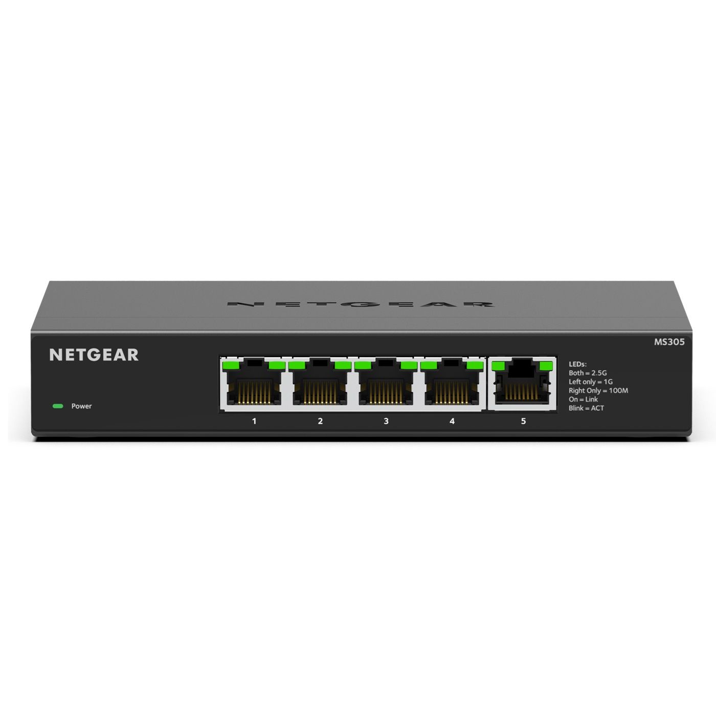 The NETGEAR 5-port Multi-Gigabit Unmanaged Switch, MS305, helps businesses cost-effectively expand their networks with multi-gig speeds. The MS305 Multi-Gigabit Ethernet switch comes with five (5) 2.5G ports in a metal case and can be placed on a desk or mounted on a wall with the included wall mount kit. This switch is energy efficient, built to last, and rigorously tested to provide the reliability businesses need. 802.1p traffic prioritization and jumbo frame support allow for seamless integration with more sophisticated networks.