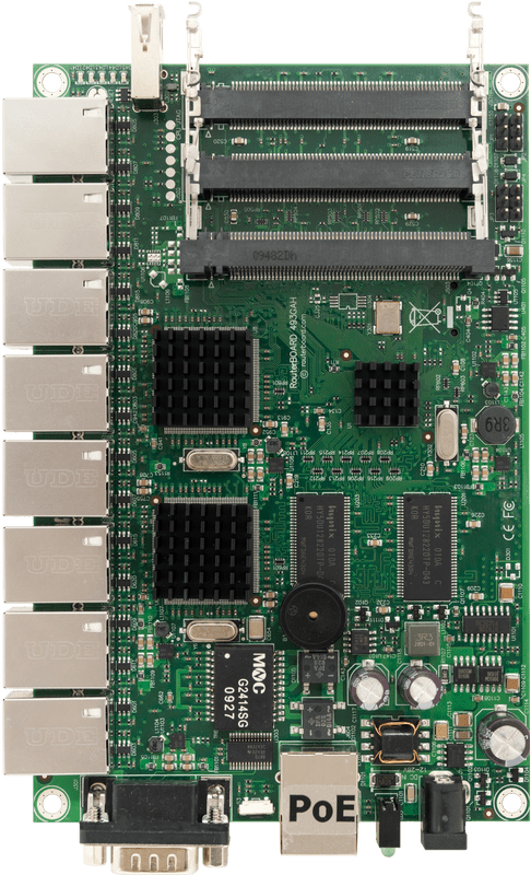 The heart of this device is a high performance Atheros AR7161 CPU and it features 256MB of built in RAM. RB493G includes RouterOS - the operating system, which will turn this powerful system into a highly sophisticated router, firewall or bandwidth manager.