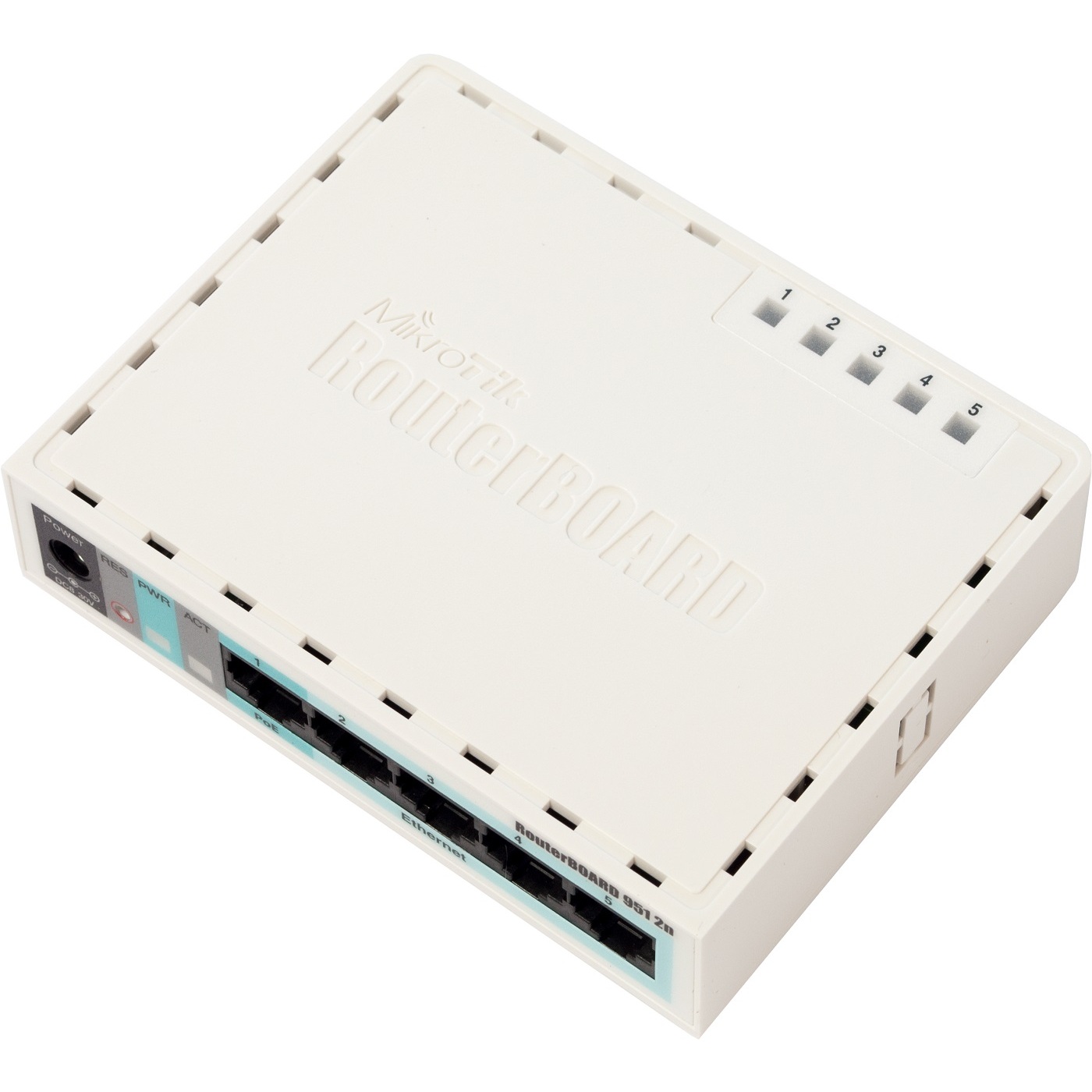 The RB951-2n is the home wireless AP you have been waiting for. It has five Ethernet ports and a 802.11b/g/n wireless AP with an antenna built in. This model is much smaller than the more powerful RB751U-2HnD model, the RB951-2n looks exactly like our popular RB750 series. The device is very small and will look good in any home or office, wall mounting anchor holes are provided. Box contains: RB951-2n, plastic case, power supply.