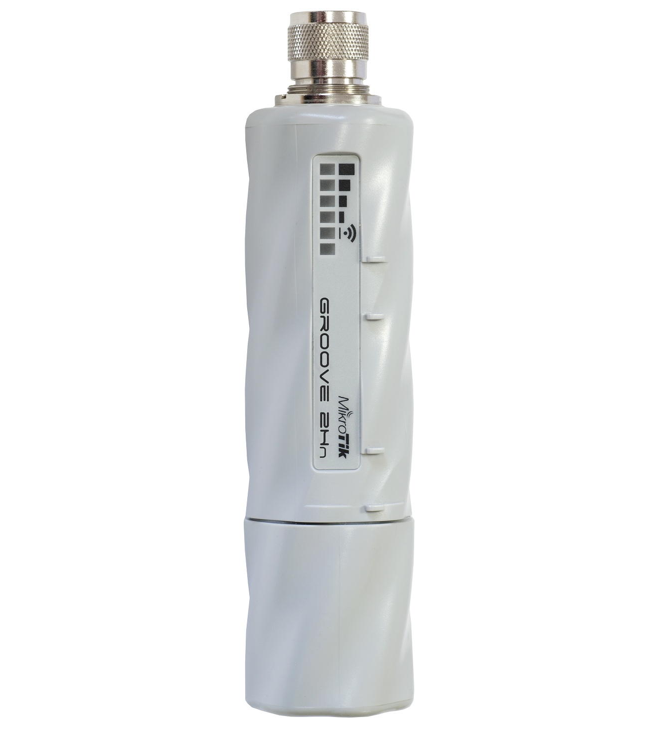 The GrooveA-2Hn-32 is MikroTik's smallest outdoor series model - a fully featured RouterBOARD powered by RouterOS. Weatherproof, durable and ready to use. It has one 10/100 Ethernet port with PoE support and a built-in 630mW 802.11b/g/n wireless radio. With the Nv2 TDMA technology, 125Mbit aggregate throughput is possible, limited only by the ethernet port!
